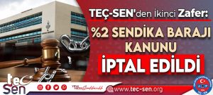 %2 Sendika Barajı Kanunu İptal Edildi: TEÇ-SEN’den İkinci Zafer TEÇ-SEN Başkanı Demirel: “Memurların Sesi Artık Daha Güçlü” TEÇ-SEN Genel Başkanı Ümit Demirel, memurların sendika seçme özgürlüğünü kısıtlayan ve yeni memur sendikalarının kurulmasını engelleyen %2 sendika barajının iptal edilmesini büyük bir zafer olarak nitelendirdi. “Bu karar, bağımsız kamu sendikalarının önündeki en...